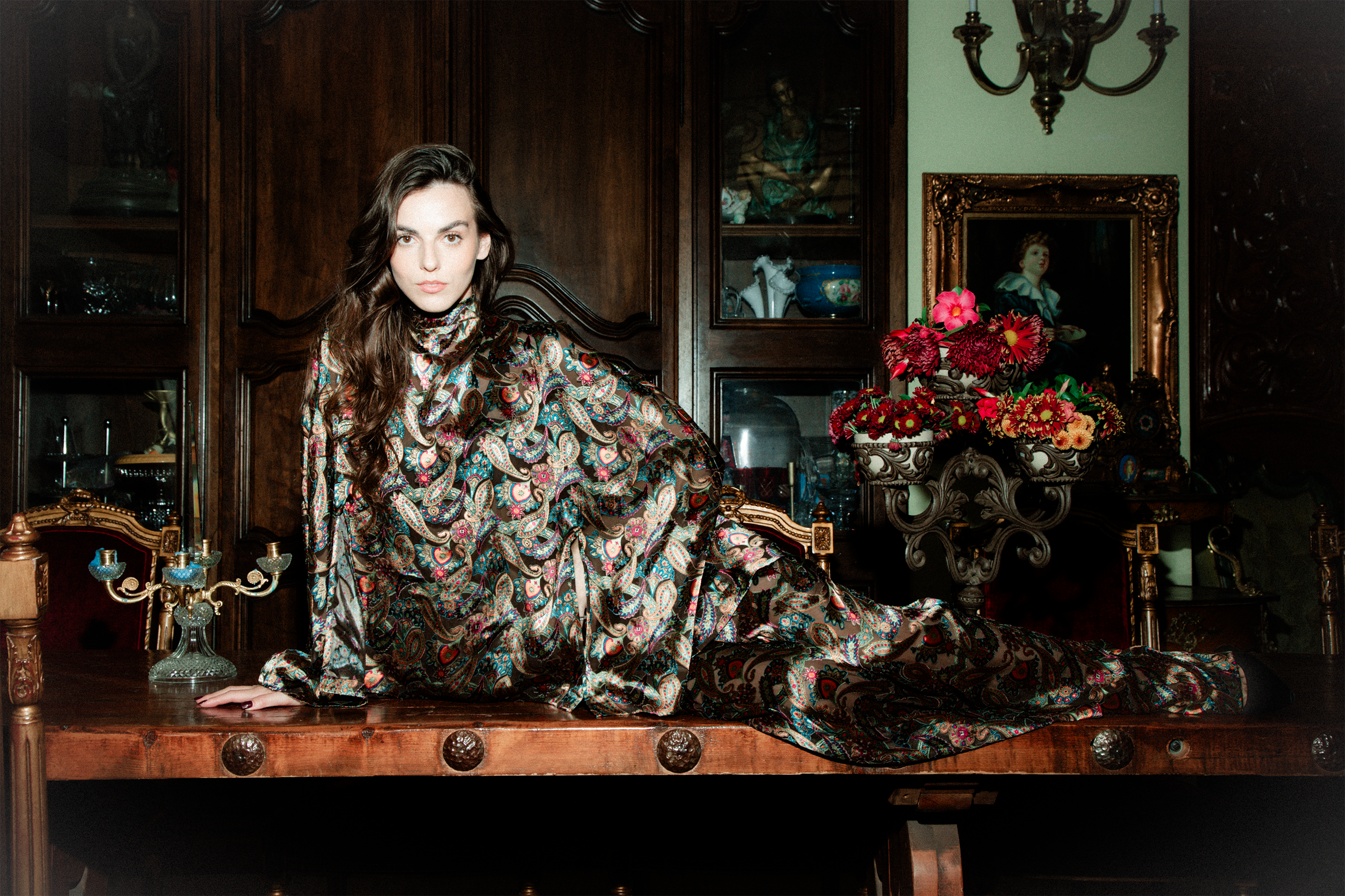 Explore the CollectionSculptural silk silhouettes rendered in expressive prints and fluid movement.